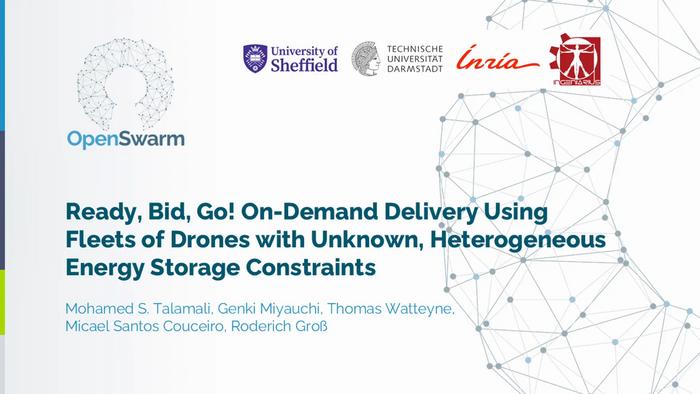 The study ‘Ready, Bid, Go! On-Demand Delivery Using Fleets of Drones with Unknown, Heterogeneous Energy Storage Constraints’ will be presented on 21 May at the 24th International Conference on Autonomous Agents and Multiagent Systems in Detroit, USA, and was selected as a finalist for the Best Paper Award from more than 1,000 submissions. It received funding from the Horizon Europe project OpenSwarm.