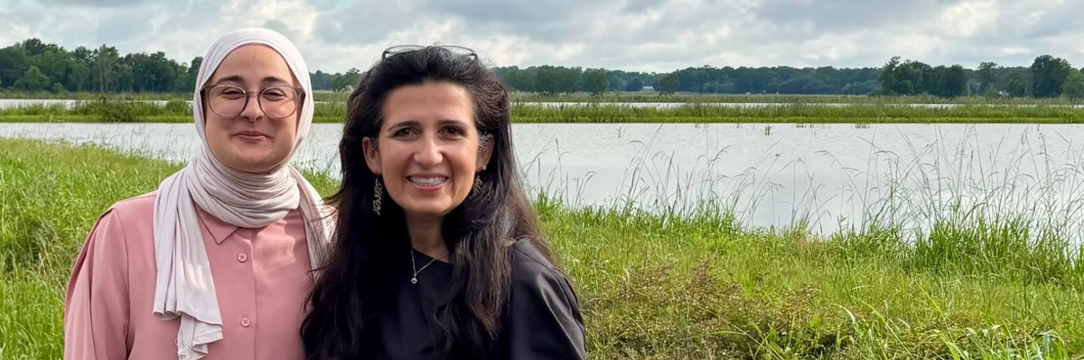 Rümeysa Öztürk (left) with her lawyer Mahsa Khanbabai (right) pose for a photo following the Fulbright scholar's release from Immigration and Customs Enforcement detention in Louisiana on May 9, 2025.