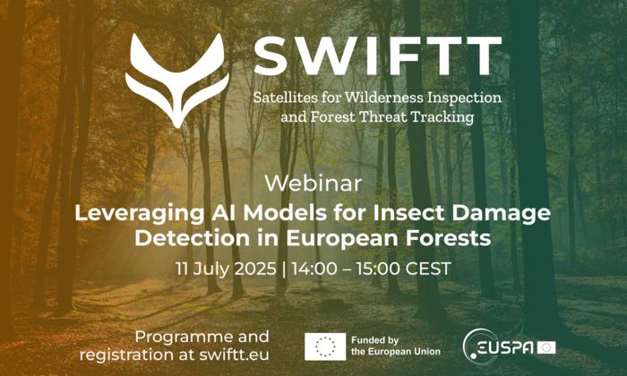 The SWIFTT project invites forest professionals, researchers, and remote sensing experts to its upcoming webinar, “Leveraging AI Models for Insect Damage Detection in European Forests,” taking place online on 11 July 2025, from 14:00 to 15:00 CEST (Paris Time).