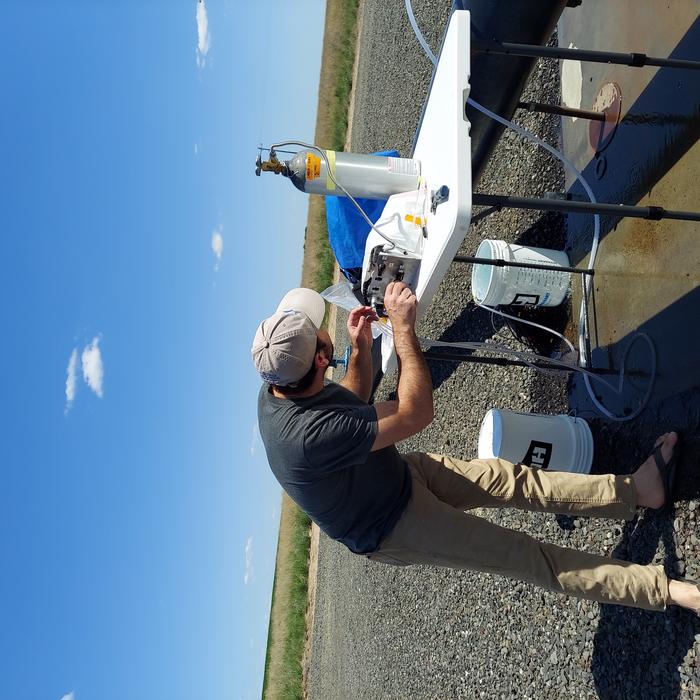 Extracting dissolved gases from 20,000 year-old groundwater flowing from a supply well on a farm in Eastern Washington.