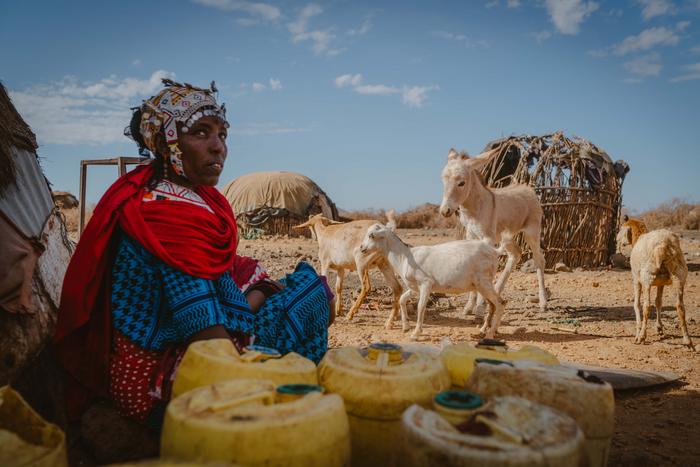 A woman collecting her jerry cans to fetch water in Kambinye Kenya on the 15th of October 2024