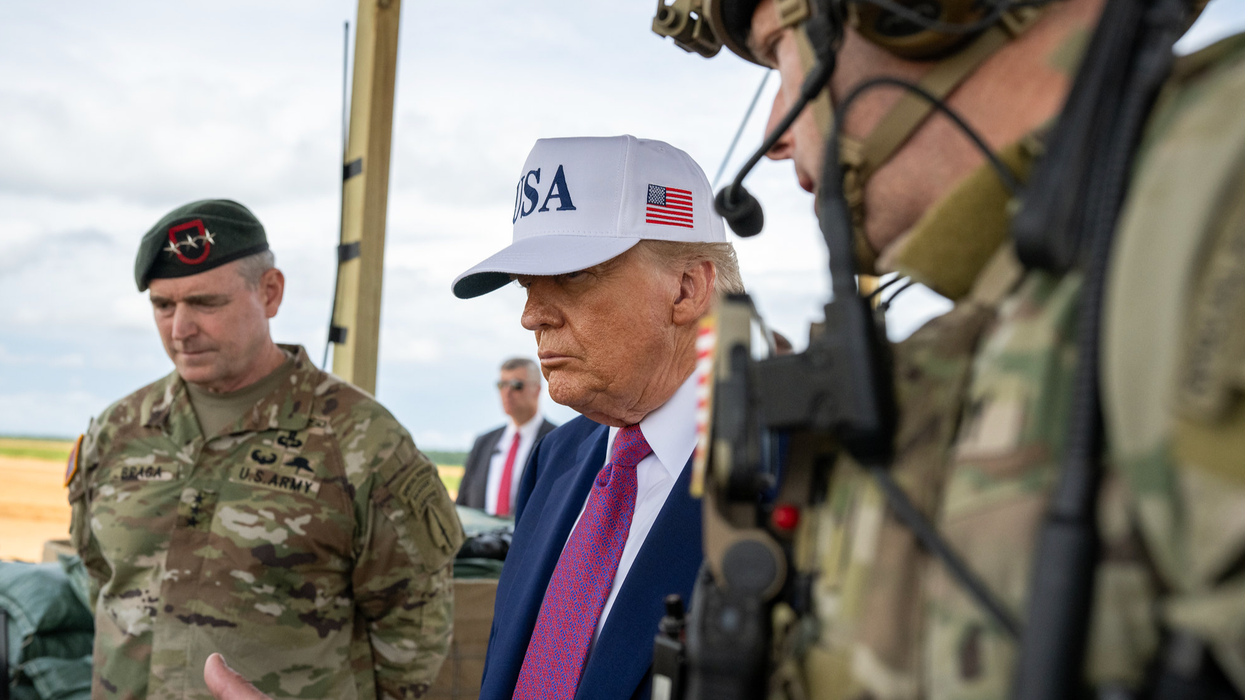President Donald Trump observes a military demonstration at Fort Bragg, North Carolina on Tuesday, June 10, 2025, during a visit to commemorate the 250th anniversary of the U.S. Army. (Official White House Photo by Daniel Torok)