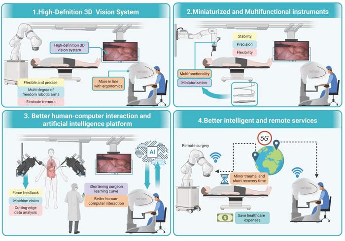 Each year, numerous patients worldwide require surgical interventions that could benefit from the precision and safety offered by surgical robots. The standard approach for complex surgeries often involves traditional open or laparoscopic techniques, which may result in significant patient trauma and longer recovery times. In a study published in the manuscript "Current Application Status and Innovative Development of Surgical Robot," a team of researchers explores a new approach to enhance surgical outcomes through the use of surgical robots. The review outlines the technological evolution of surgical robots and their current clinical applications, providing a comprehensive assessment of their advantages and challenges. It also discusses the technological improvement paths of surgical robots and predicts their future development directions, including intelligence, specialization, precision, minimally invasiveness, and the enhancement of tele-surgical capabilities. "Surgery has undergone a revolutionary development since the innovations in anesthesiology, aseptic techniques, and antibiotics. The use of modern techniques, especially minimally invasive techniques, has led to a new era of microsurgery and reduced patient trauma," explains the study. However, the new technologies have also brought about a diversification of surgical equipment and complexity of operations, prolonging physician training cycles and increasing costs. The emergence of surgical robots has addressed these challenges, particularly in operating within small anatomical spaces, and their technology continues to advance across various medical scenarios to improve medical efficiency.