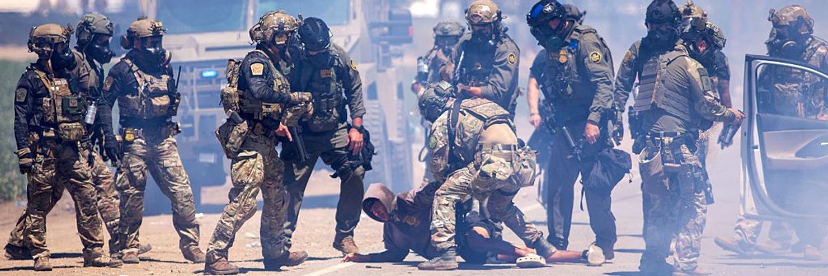 Federal authorities including U.S. Immigration and Customs Enforcement (ICE) agents, many clad in military-style gear, stormed farms in Santa Barbara and Ventura counties on Thursday to execute search warrants for undocumented people. At Glass House Farms in Camarillo—which grows state-legal cannabis as well as tomatoes and cucumbers—the invading agents were met with spirited resistance from hundreds of community members who rushed to the site in support of targeted workers. Federal officers responded by firing tear gas and less-lethal projectiles at crowds of protesters who were blocking area roadways in a bid to prevent arrests.