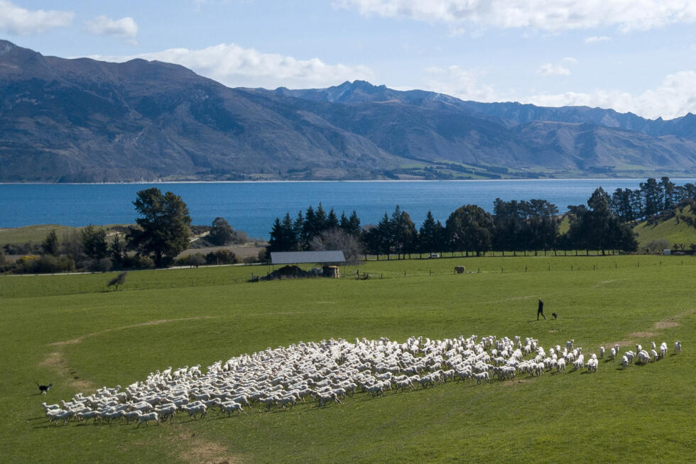 Sheep moving to pasture in the Otago region of New Zealand in September 2023. Rural New Zealand once abounded with rolling pastures, rickety wire fences hemming in millions of sheep chewing on the green grass. © KAVINDA HERATH / AFP