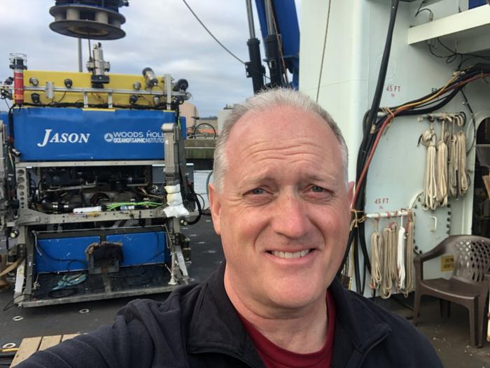 UMass Amherst microbiologist James Holden readying the submarine that will travel to the ocean’s floor in search of microbial life.