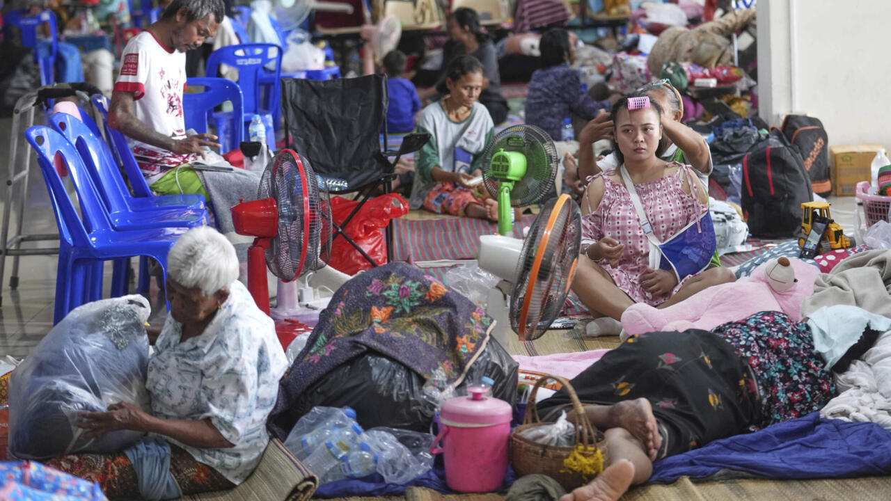 Thai residents who fled homes following clashes between Thai and Cambodian soldiers rest at an evacuation center in Surin province, Thailand, Sunday, July 27, 2025. © Sakchai Lalit, AP