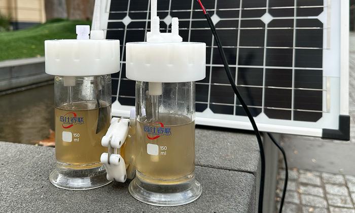 The team's experimental set up of hydrogen production using partially treated wastewater and solar power.