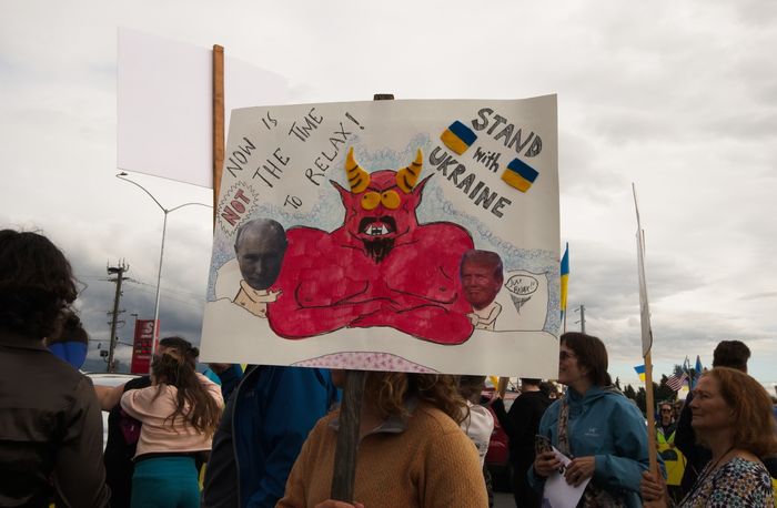 Alaskans With Ukrainian Flags Protest 'Fascist' Trump Meeting 'War Criminal' Putin