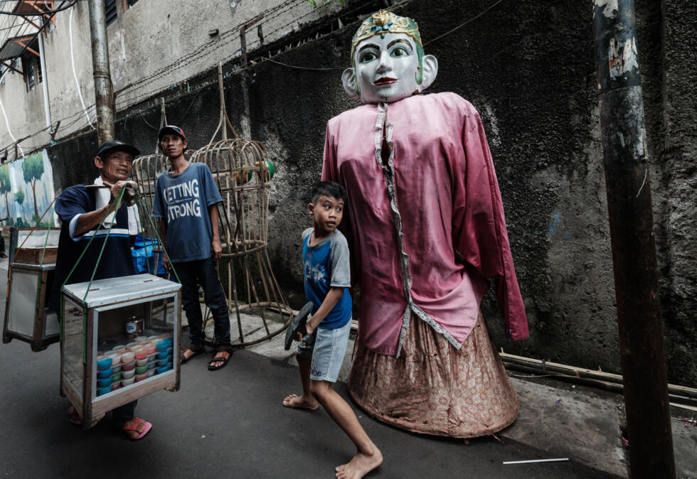 Performances featuring giant puppets known as ondel-ondel are a feature of street life in the Indonesian capital
