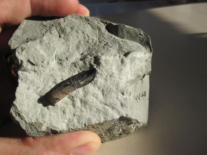 Tooth of a Europasaurus, a dinosaur similar to Diplodocus, in limestone, found in the Langenberg quarry in the Harz Mountains which was also analysed in the study.