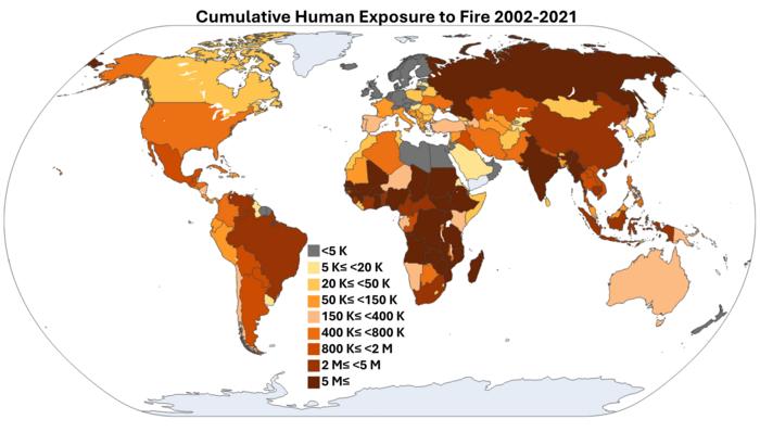 A new analysis by UN University scientists finds that the total human population directly exposed to wildfire rose 40% globally with 85% of that in Africa, leading to 1.5 million indirect deaths each year