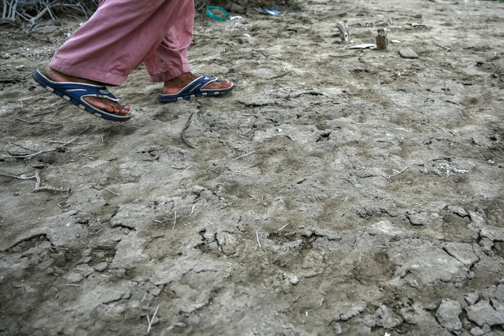 Kharo Chan (Pakistan) (AFP) – Salt crusts crackle underfoot as Habibullah Khatti walks to his mother's grave to say a final goodbye before he abandons his parched island village on Pakistan's Indus delta.