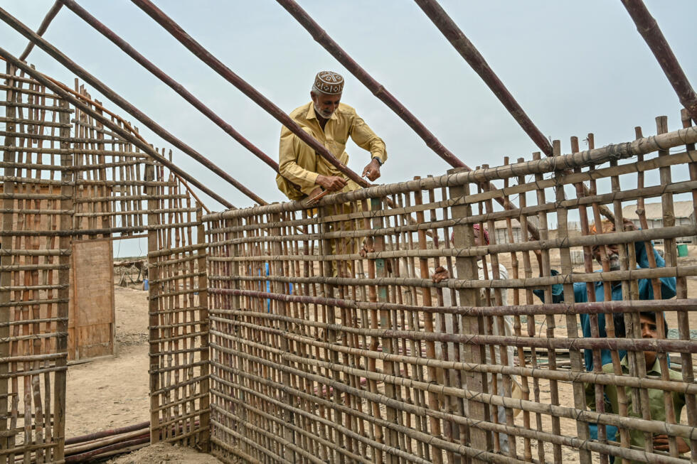 Haji Karam Jat, whose house was swallowed by the rising water level, rebuilt his new hom farther inland © Asif HASSAN / AFP