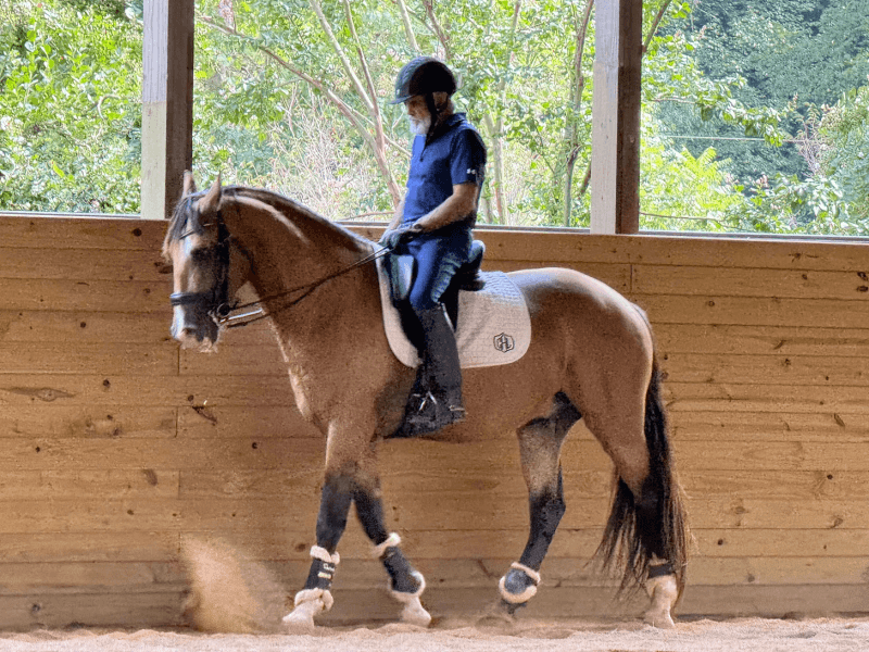 Below is me riding Jade, Quartz’ sire last week. Yeah, I was a little sore after a week of riding each day.
