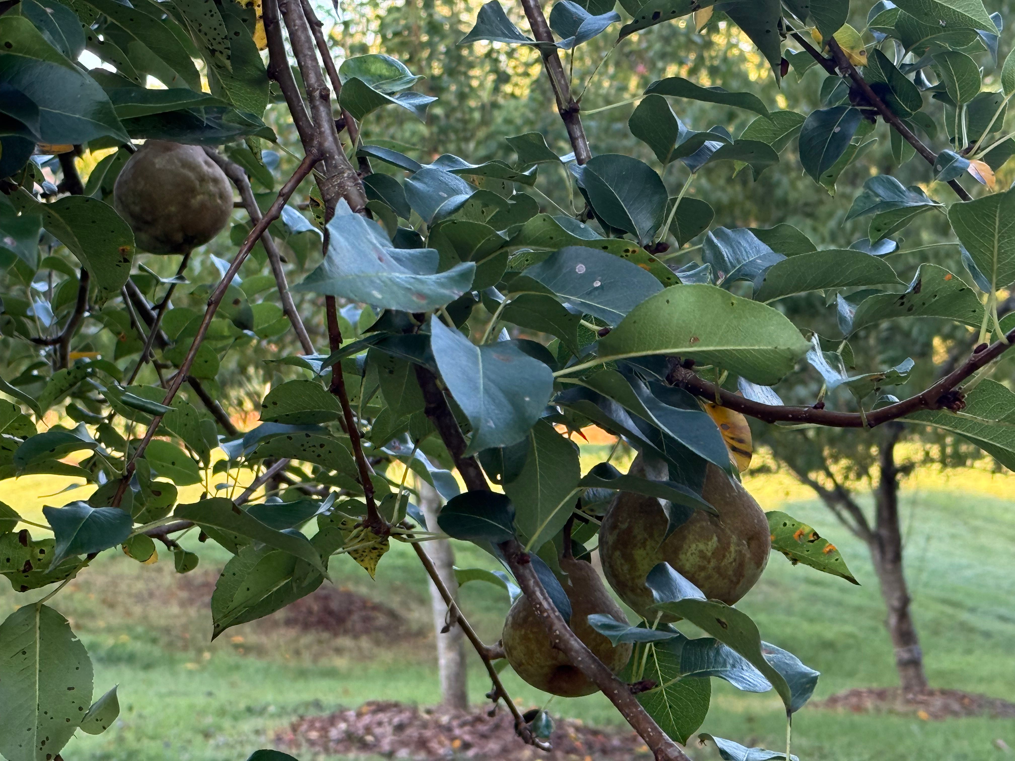 The garden has been a source of pure joy this summer, and we have managed to reduce our need to buy produce significantly. We are now harvesting Asian pears and have a good crop. However, this variety has a thick skin that has developed some blemishes due to the high number of pests in Virginia.