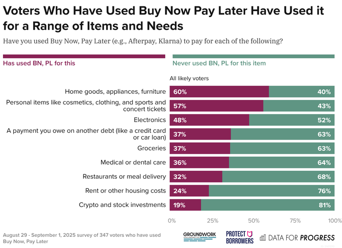 "Today's poll reveals a troubling rise in families relying on buy now, pay later loans just to stay afloat, trapping hardworking Americans in a cycle of debt that some fear will take years to climb out of," said Groundwork's executive director, Lindsay Owens. "As Americans plead for their government to help with soaring costs, President Trump is not just ignoring their struggles, he's actively making them worse with reckless policies that drive up prices on essentials like food and energy."