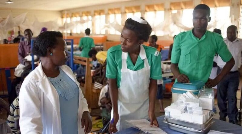 Ugandan health care workers during a clinical trial. Swiss drugmaker Novartis has announced a new malaria drug it says has proved to be effective in trials.