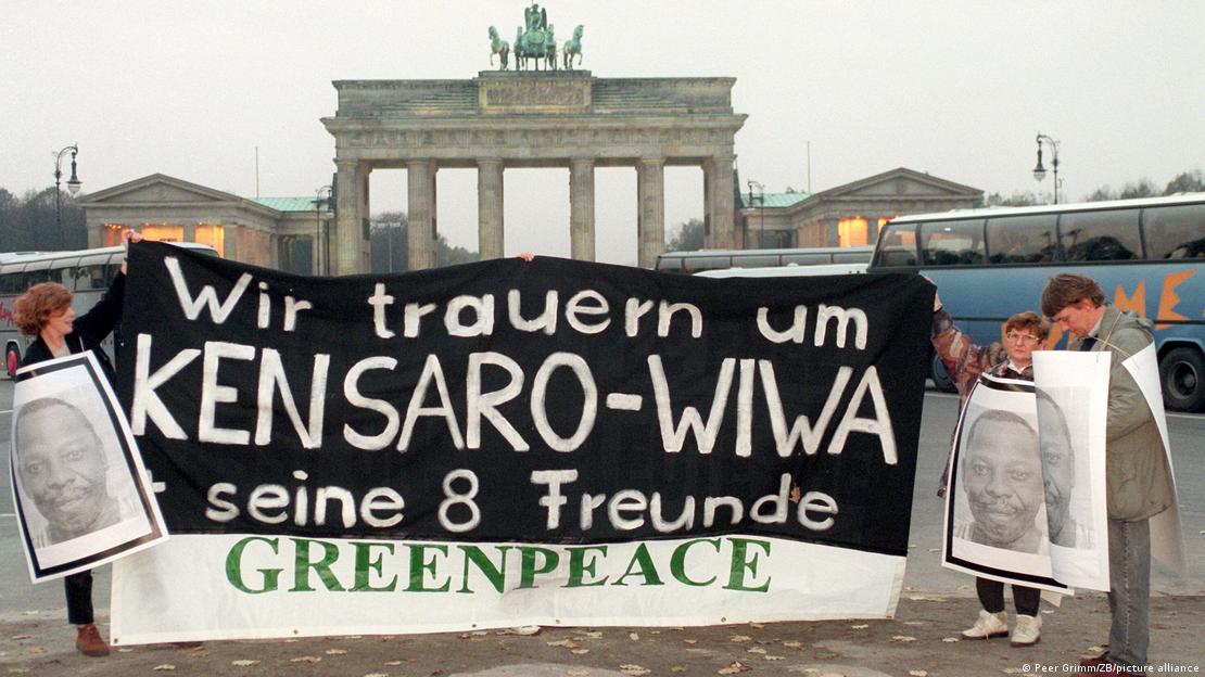 There were international protests — here in Berlin in 1995 — against the execution of Ken Saro-Wiwa and his eight fellow activists