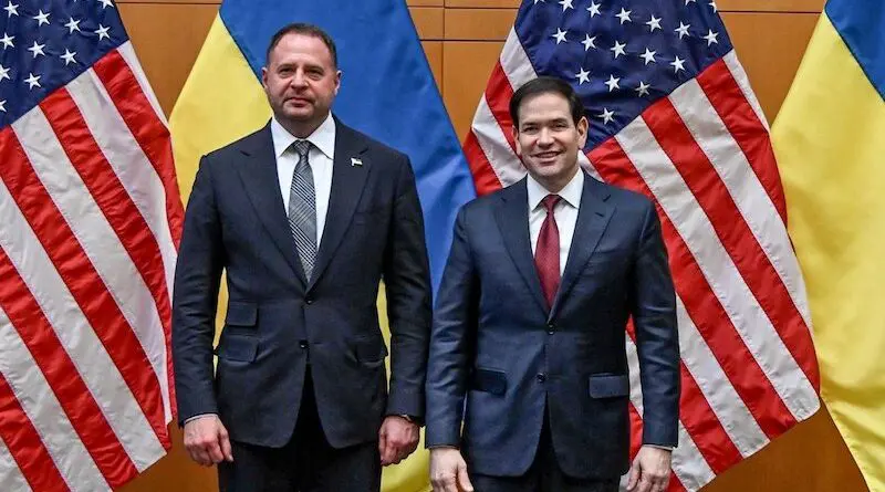 US Secretary of State Marco Rubio (r) and Ukrainian delegation head Andriy Yermak.