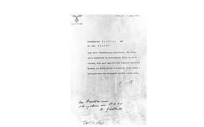 Image: Adolf Hitler’s authorization for the euthanasia program (Aktion/Operation T4), signed in October, 1939, but dated September 1, 1939. The Nazis were the first to implement lethal injection, which the Knesset now is debating to use as Israel’s execution method of choice. (National Archives and Records Administration, College Park, MD, public domain)