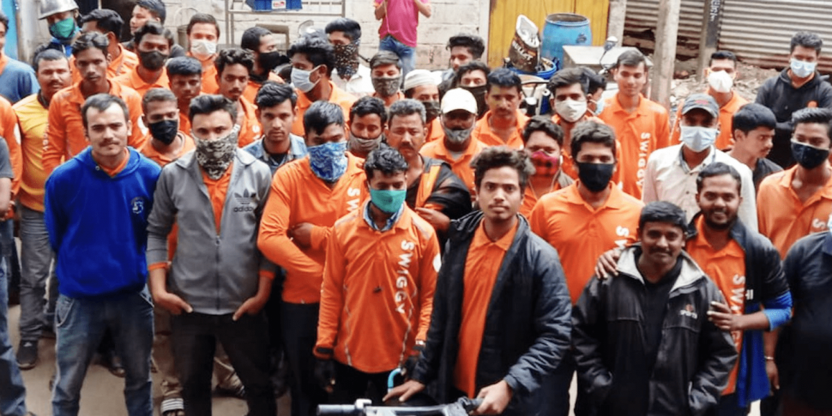Representational image of gig workers in Bengaluru. Photo: X/@aigwu_union.