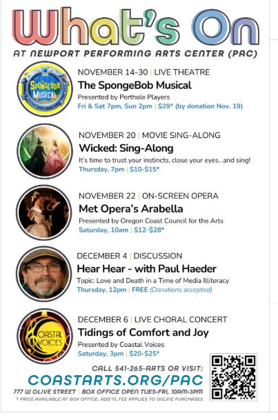 They (OCCA) are scrubbing all evidence that the Oregon Coast Center for the Arts ever invited me to speak/give a master class. Yep, two days before I was going to give a short, intense master class, cancelled.