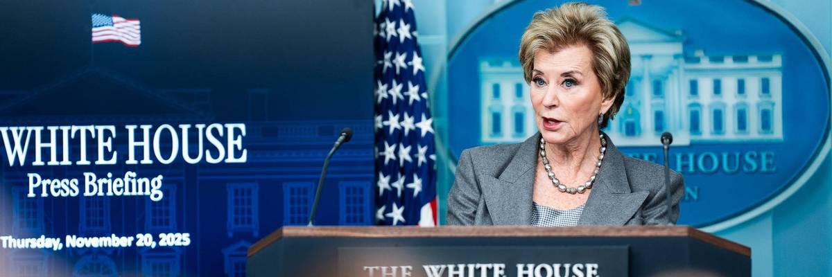 US Secretary of Education Linda McMahon speaks to reporters on November 20, 2025.