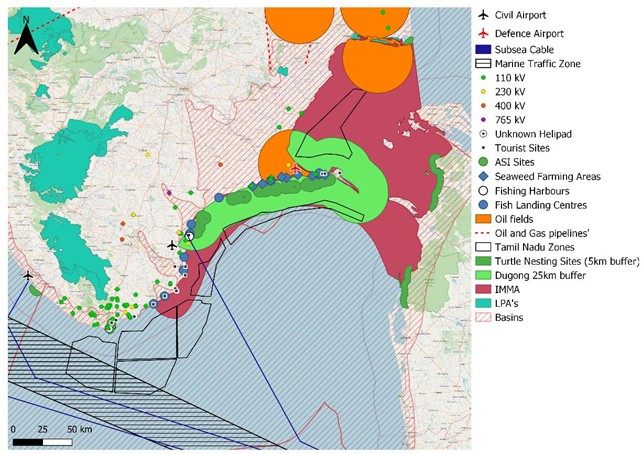 Source: Centre of Excellence for Offshore Wind and Renewable Energy, 2022. Maritime Spatial Planning for offshore wind farms in Tamil Nadu.