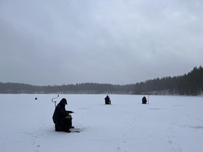 Participants and competitions: A total of 74 experienced ice fishers took part, over two years, in ten three-hour competitions on ten lakes in eastern Finland. Researchers recorded 477 individual foraging trips and 16,055 decisions about fishing locations.