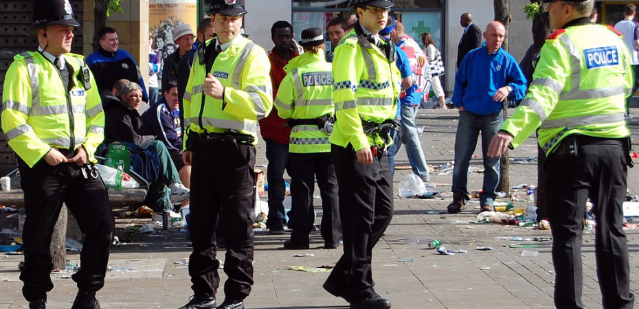 Image: Greater Manchester Police officers https://commons.wikimedia.org/wiki/File:Greater_Manchester_Police_officers_in_Piccadilly_Gardens_%28Manchester,_England%29_2.jpg. Source: Clear up day uefa 15 May 2008 manchester. Author: Terry from uk, licensed under the Creative Commons Attribution 2.0 Generic license.