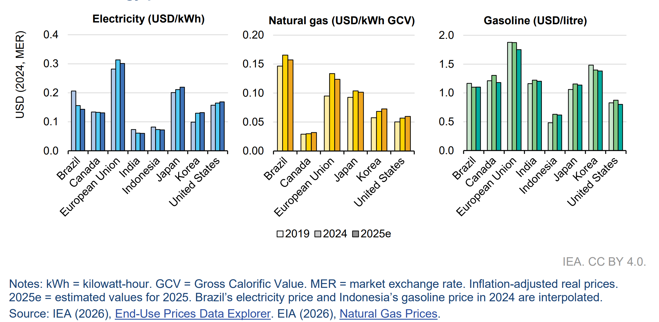 The increased demand for power will add to the cost-of-living crisis in the Global North. Although down from their 2022 peak, consumer prices remain well above pre crisis levels and rising power costs are already make things worse, according to the IEA’s last Household Energy Affordability report. In Europe, after the 2022 energy shock, power prices remain twice their long-term pre-Ukraine war average and now they are rising again thanks to the Iran war.