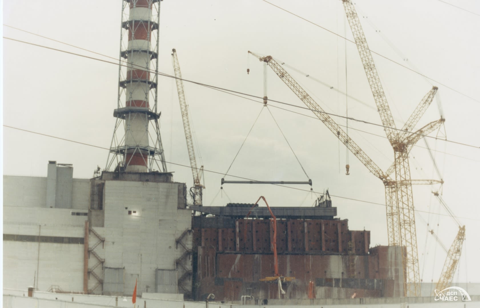 The shelter structure that was built is also known as the sarcophagus, and it was completed in just 206 days. It contains the molten core of the reactor and an estimated 200 tonnes of highly radioactive material. Here's a series of pictures of the work being carried out, courtesy of SSE Chornobyl Nuclear Power Plant: