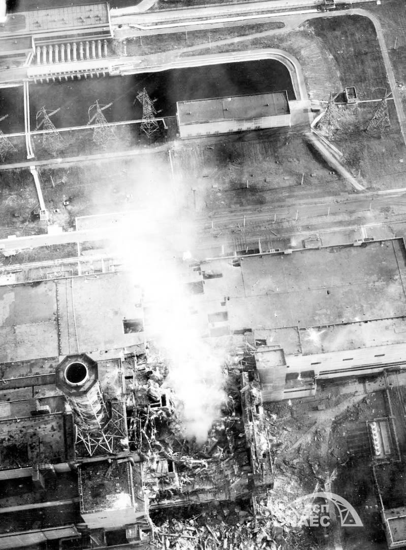 Fires started in what was left of the Reactor 4 building and other parts of the site, releasing clouds of steam and dust - most of these fires had been put out within a few hours. But a serious fire which involved the reactor's graphite moderator burned for days, finally being extinguished by 9 May.