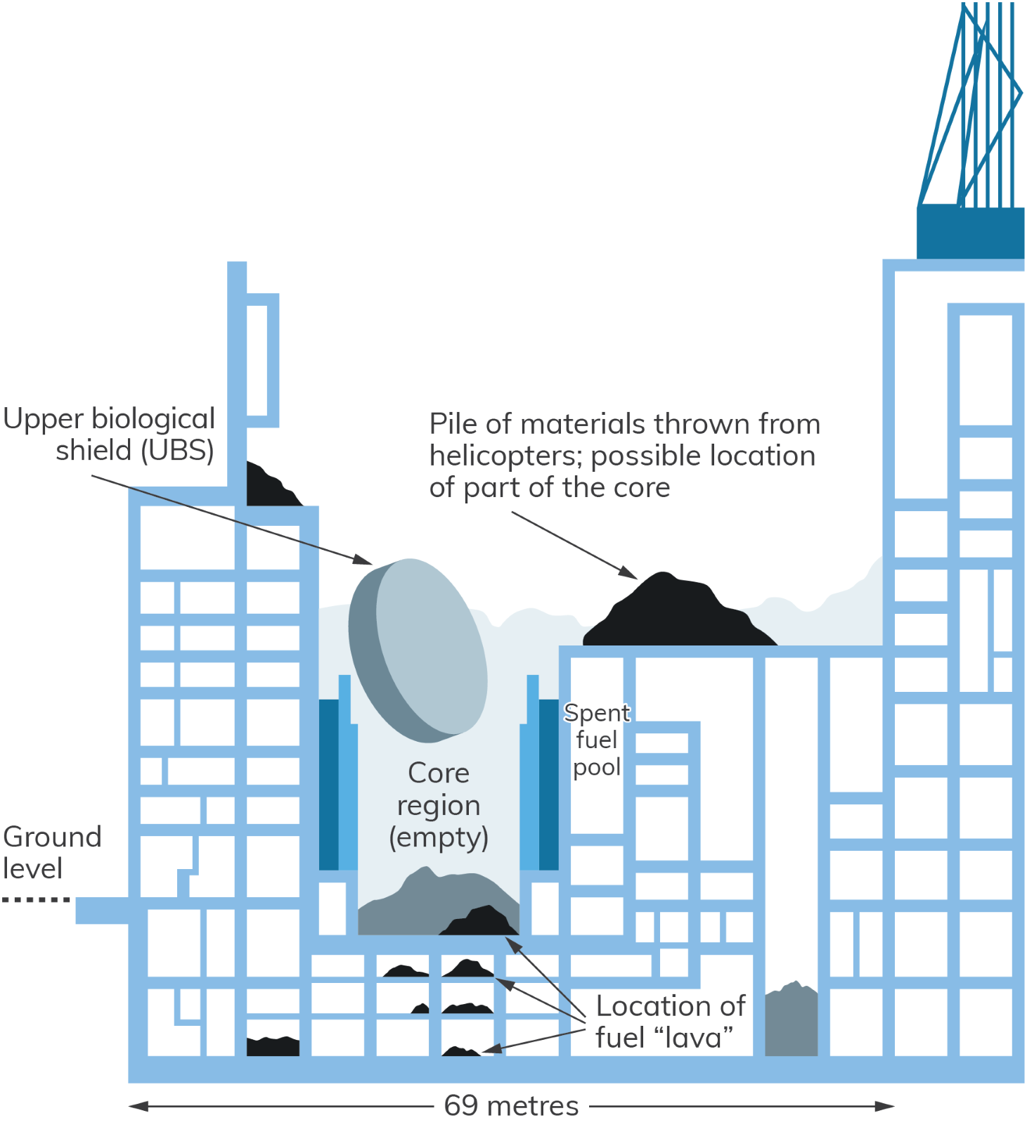 And here's a World Nuclear Association graphic of the reactor post-accident: