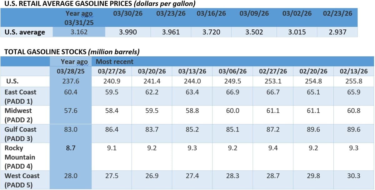 Russia Bans Gasoline Exports until July. Russia’s government has imposed a ban on gasoline exports for refiners until the end of July, citing the need to keep domestic prices steady ahead of high-demand season in the summer, taking some 120,000 b/d of gasoline flows off the global markets.