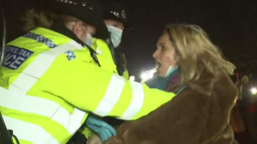 London police have stormed in to disperse crowds at a memorial for murder victim Sarah Everard after warnings that vigils and protests about violence against women would breach COVID-19 restrictions.