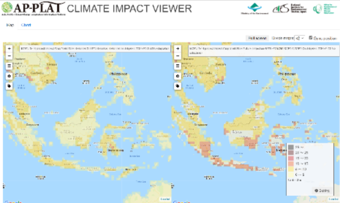 The Climate Impact Viewer shows the results of climate change impact assessment in various sectors, including the existing climate, water resources, vegetation, agriculture, and health. Users can visually compare global projections across different sectors and time scales.