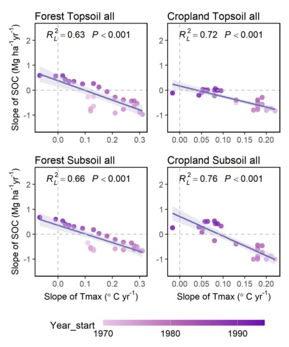 Rising temperatures predominantly coincided with reduced topsoil SOC stock.