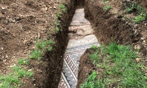The mosaic was found a few metres beneath a row of vines a week after work resumed after the coronavirus lockdown. Photograph: Comune di Negrar di Valpolicella