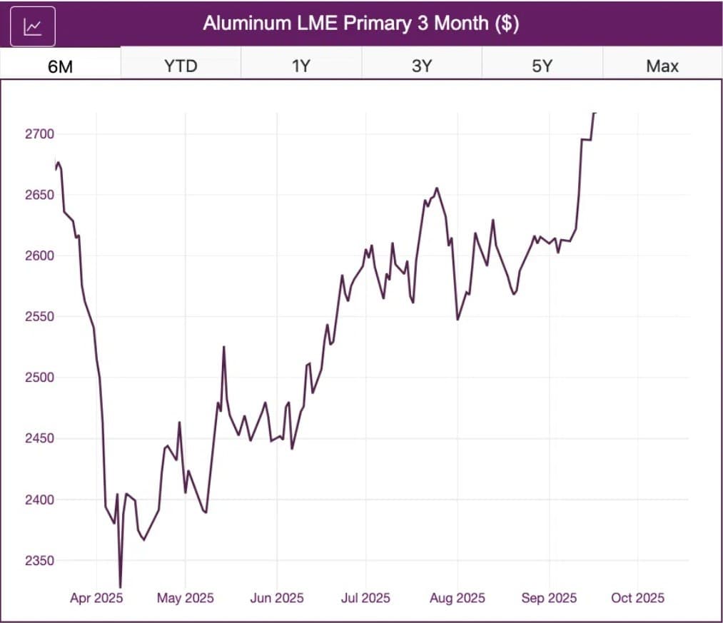 Overall, subdued demand conditions remain a constraint on market sentiment. Back in April, Goldman Sachs reduced its aluminum price forecast as a result of a weaker economic growth outlook. Sachs’ outlook also suggested the possibility of a surplus into 2026 if demand does not recover as strongly as anticipated.