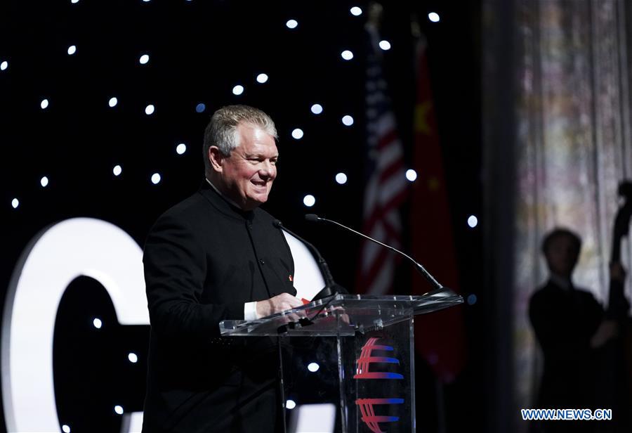 Curt Ferguson, president of Coca-Cola China, Korea and Mongolia, delivers remarks during the 15th Anniversary and Lunar New Year Gala of China General Chamber of Commerce-USA (CGCC), in New York, the United States, on Jan. 8, 2020. U.S.-based multinational non-alcoholic beverage giant the Coca-Cola Company looks forward to forging closer ties with China which is expected to become the biggest market of the company, according to Curt Ferguson. TO GO WITH "Coca-Cola eyes closer ties with China riding great growth potential" (Xinhua/Wang Ying)