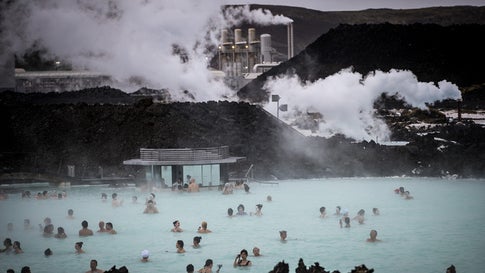 Visitors sit in the geothermal waters at the Blue Lagoon close to the Icelandic capital of Reykjavik on August 30, 2018.(Photo by Maja Hitij/Bongarts/Getty Images)