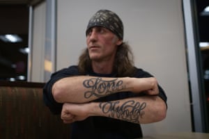 Doug Paton got a Lone Wolf tattoo to mark his encounter with Takaya. Photograph: Leyland Cecco