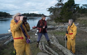 Photographer Cheryl Alexander, centre, with biologists Thomas Riemchen and Sheila Douglas. Photograph: Leyland Cecco