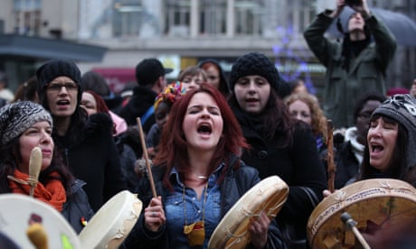 FacebookTwitterPinterest First Nations protesters sing as they take part in a ‘Idle No More’ demonstration in Toronto. Photograph: Reuters
