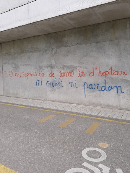 "In 20 years, more than 100,000 hospital beds eliminated. We don't forget, we don't forgive." Photo: Philippe Gonnet AUSTERITY GUTTED HEALTH CARE