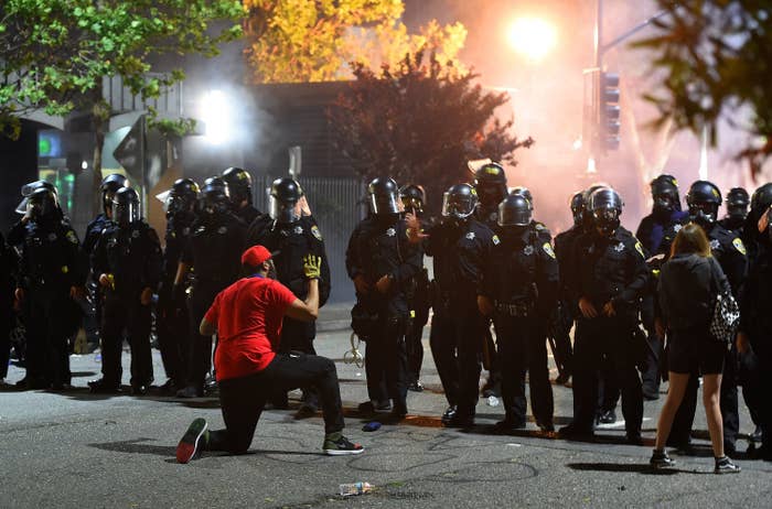 Earlier in the evening when protesters were peacefully marching through city streets, Raje Lee told BuzzFeed News she had just heard that Floyd and the ex-officer who put him in a knee chokehold had previously worked together providing security at a local bar for years.
