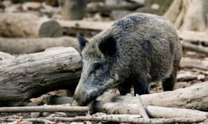 A wild boar in woods near Saint-Hubert, Belgium. Recent ASF outbreaks in the country’s wild boar population are now under control. Photograph: Julien Warnand/EPA-EFE