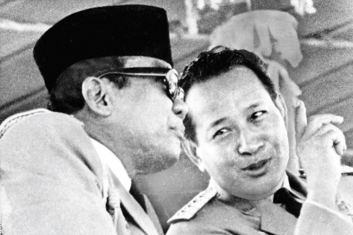 Indonesian president Sukarno (left), who handed over his presidential power to military strongman Suharto in February 1967, is shown with Suharto during an Independence Day Parade in Jakarta, in October 1966. Photo: AP